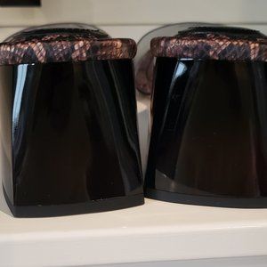 NWT: GOOD AMERICAN Block Heel Slide Sandal In Desert Snake