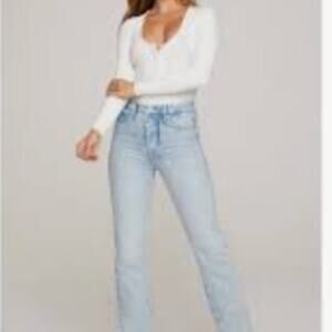 NWT GOOD AMERICAN Good Boy Acid Wash Relaxed Fit Jeans 14/32