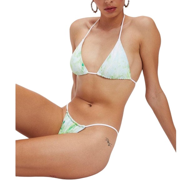 NWT GOOD AMERICAN Matte Tiny Tie Triangle Top Fixed Bottom Green Marble XL (4) b