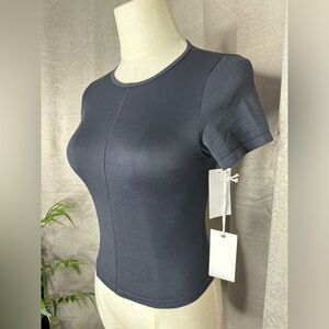 NWT GOOD AMERICAN Women’s So Soft Sculpted Tee in Black001 Sz 00/0