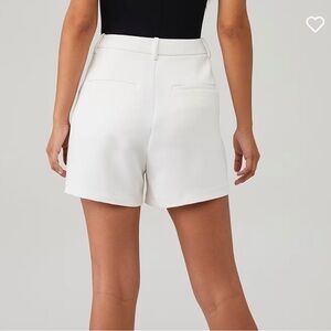 High-waist is here to stay and we especially love this style short.Introducing the Luxe Suiting Trouser Shorts by Good American, a sophisticated blend of style and comfort crafted for the modern woman. These white, high-waisted shorts feature a pleated front design, banded waist with belt loops, and a tailored fit, making them ideal for any occasion. Composed of 100% polyester stretch-weave fabric, they offer a slight give, enhancing both structure and comfort. These shorts come with side on-seam slit pockets, back welt pockets, and a zip-fly button closure. Care instructions are simple - machine wash for easy maintenance.