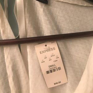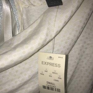 NWT GORGEOUS Express scoop neck white shimmer top. Retails new for $49.50. GORGEOUS OPEN BACK, flat shimmer detail. Can be tied in back to create higher or lower neckline plunge. Perfect for the holidays and New Years Eve.