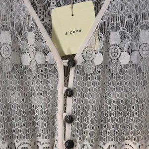 NWT GORGEOUS Tank DRESS Medium a'reve from Los Angeles. Very soft and comes with extra buttons. Top portions has a little bit of stretch. This dress is lined below the waist. 100% Polyester, Contrast is 30% Nylon and 100% Cotton. Measurements are approximate and taken unstretched laying flat Arm Pit to Arm Pit 18" Waist 16 1/2 but has about 2 inches of stretch" Length 37" This dress is a STUNNER!