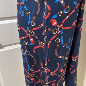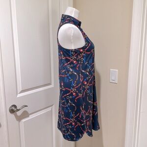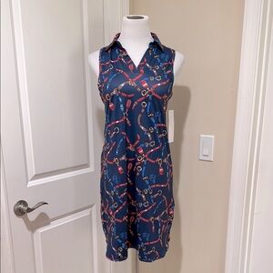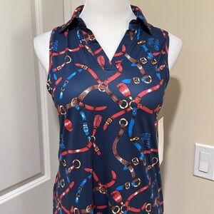 X by Gottex Athletic Dress - Tennis & Golf - Collared - V Neck - Sleeveless - Racerback - Front Pockets - Moisture Wicking - Quick Drying Technology - Blue and Red Belts Design - Size Small - Polyester & Spandex Blend - No Flaws - NWT
