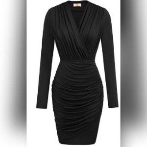 NWT GRACE KARIN Retro Long Sleeve Ruched Wrap Party Pencil Dress, L