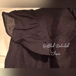 •Black high neck ruffled neck
