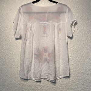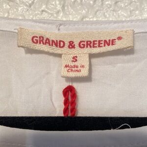 NWT GRAND & GREENE Embroidered Floral White Flutter Sleeve Shirt Size Small. New with tags. 100% Rayon.