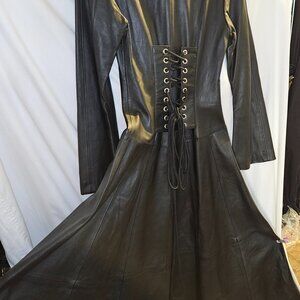 The Night Owl Corset from Corset Creation, USA in Green Silk with Black Boning Binding and Trim. This is a high quality high end tight lacing corset in size SMALL or 24" when cinched shut. It is best for natural waist size 27" to 30" and is great for all torsos and breast size Girl in Purple with B cup wearing same design. LAST PICTURES OTHER ITEMS FROM MY CLOSET. Corset features All Around DOUBLE sprung steel boning, adjustable back lacing with a privacy panel, a front busk closure with an adjustable tie front at the top. Outer shell is all silk, lined in 100% cotton with a strong waist tape and six tabs for detachable garter I sell separately. I just posted the only skirt that matches it a green silk large with a 33" waist.