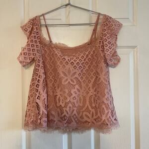 NWT GREYLIN Tremaine Off The Shoulder Short Sleeve Top Sz M Blush. Ultra feminine cold shoulder/ off-the shoulder top. Lace outlining and fully lined.