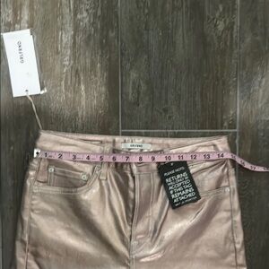 Stylish metallic blush pants. Ideal for a trendy outfit. The metallic seems to be different colors and different areas but in the light it all looks the same. Really neat pants. NWT