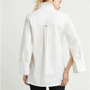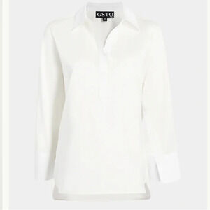 NWT GSTQ Placket Long Sleeve Collar Shirt Off White Top XS