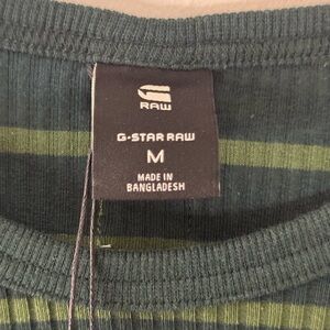 NWT G-Star RAW Green Ribbed Striped Long Sleeve Shirt Medium