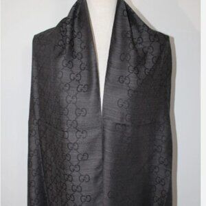 NWT GUCCI Black Jacquard GG Wool Silk Scarf Unisex