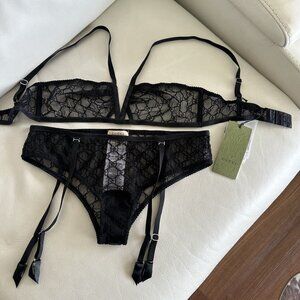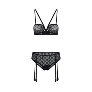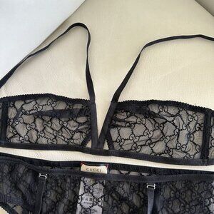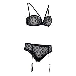 NWT GUCCI GG STAR TULLE LINGERIE SET SIZE S BLACK