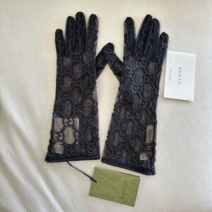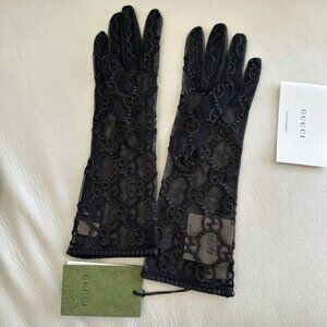 NWT GUCCI GLOVES TULLE LACE GG BLACK Sz 6.5 S