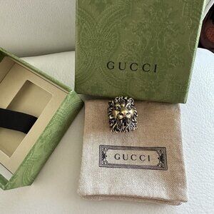 NWT GUCCI Gold Lion Ring Anger Forest 13 IT 6.5 US 100% AUTHENTIC