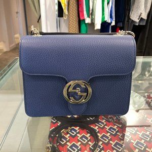 NWT GUCCI Interlocking GG Leather Crossbody Bag blue 510304