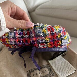NWT GUCCI LAME BERET CAP Check Lame Sz L Multicolour Violet Tweed