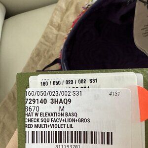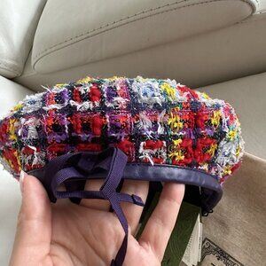 NWT GUCCI LAME BERET CAP Check Lame Sz M Multicolour Violet Tweed