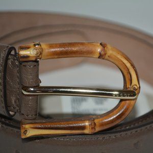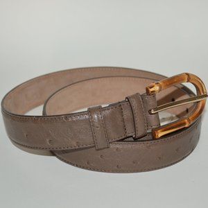 AUTHENTIC GUCCI OSTRICH LEATHER SILVER HARDWARE BELT WITH BAMBOO BUCKLE