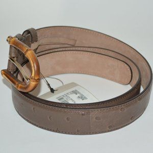 NWT GUCCI OSTRICH LEATHER SILVER HARDWARE BELT WITH BAMBOO BUCKLE