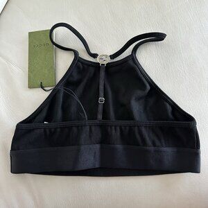 NWT GUCCI RIBBED TOP BLACK LOGO CROPPED SZ S 100% Authentic