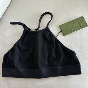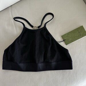 NWT GUCCI RIBBED TOP BLACK LOGO CROPPED SZ XXL 100% Authentic
