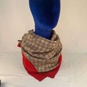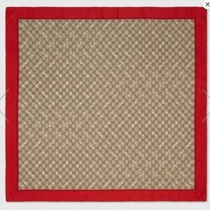 Elegant Gucci scarf with iconic pattern. Rich red border. Perfect for any occasion.