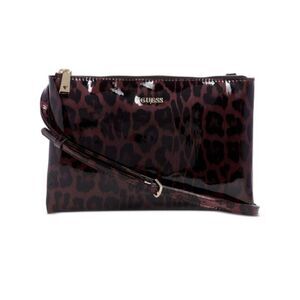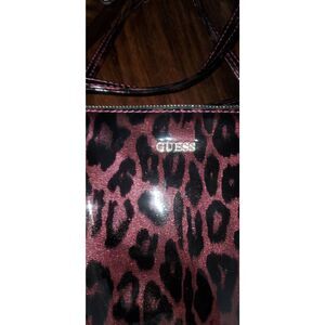 This item is a Guess women's purple animal print PVC adjustable strap crossbody handbag purse.