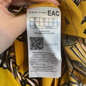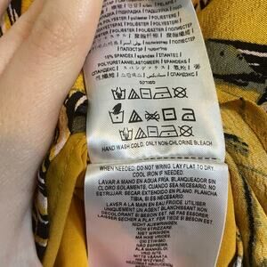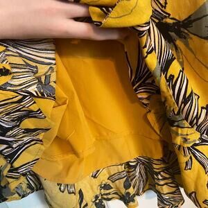 NWT GUESS Dress Yellow Palm Print Cascade Front V-Neck Ruffle Bottom Size Small