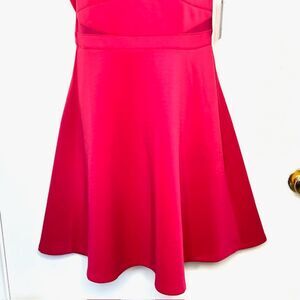 NWT GUESS "RITA" ROSE RED SKATER DRESS MESH CUTOUTS SIZE 10