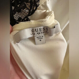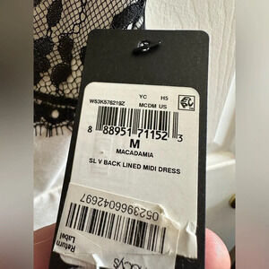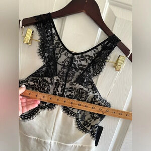 NWT! GUESS White MIDI Dress Black Elegant Dainty Eyelash Lace V Back Lined MED