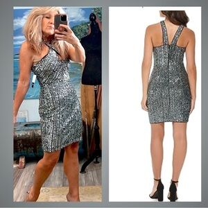 NWT,4, GUESS,Women's Sequin Mesh Cross Over Bodice Top Mini, Gorgeous, size 4, #DesignerClothing.