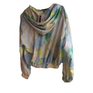 Brand new with tags, super cute Guess windbreaker jacket in green, yellow, blue. Front light yellow zipper.