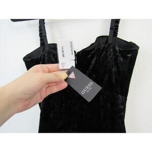 NWT GUESS XS Women's Sleeveless Gianna Velour Dress Jet Black Bodycon