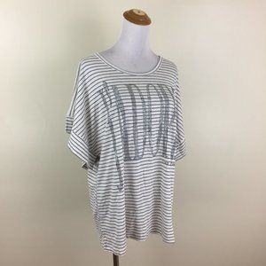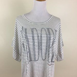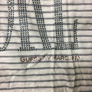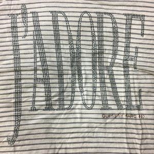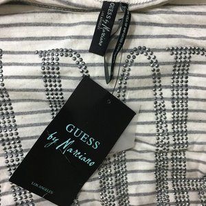 NWT GUESS by MARCIANO Short Sleeve Striped Silver Rhinestone J'ADORE Shirt Top
