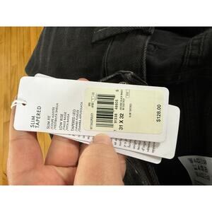 NWT GUESS mens slim tapered pants splatter stretch jeans black denim distressed size 31x32.