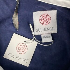 NWT GUL HURGEL Woven Maxi Dress Prairie Long Sleeve Polka Dot Blue Red White M
