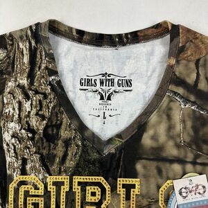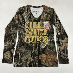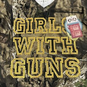 NWT GWG Girls With Guns Mossy Oak Camouflage Rhinestone L/S T-Shirt V-Neck Sz L
