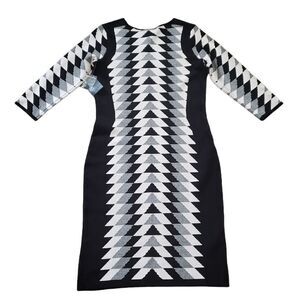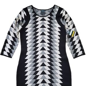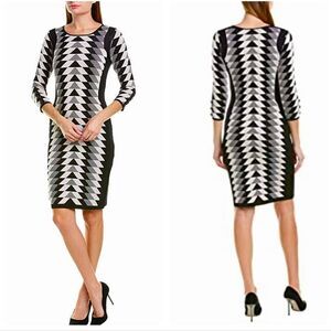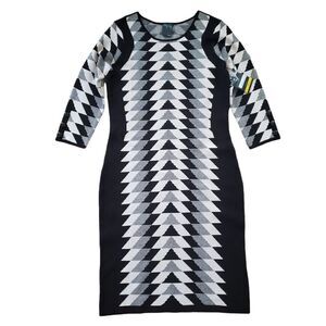 NWT Gabby Skye Black Alabaster 3/4 Sleeve Sheath Sweater Dress MEDIUM