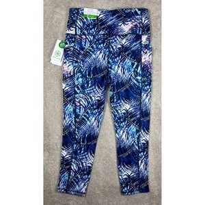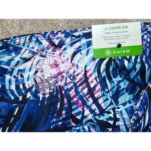Keywords: Gaiam, yoga pants, capri pants, high waist, palm leaf print, blue, white, activewear, workout pants, athletic, side pockets, medium, M, yoga, pilates