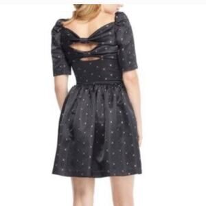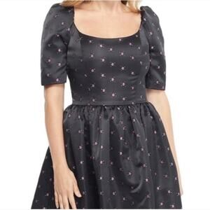 If there's a party, you're going--and you're going in this satiny daisy-jacquard dress cut with perfectly puffed sleeves and tied up in bows across the back. Side zip closure - Scooped neck - Short sleeves - Lined - 100% polyester - Dry clean - Imported - Dresses