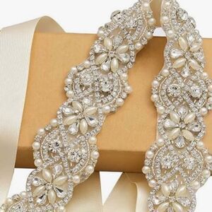 Comes with a Removable Rhinestone & Pearl Beaded Satin Ribbon Belt
