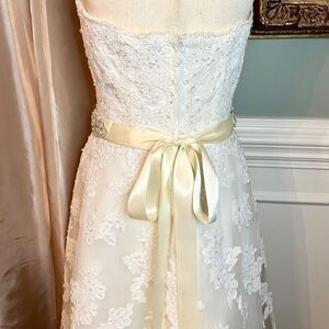 NWT Galina Beaded Strapless Tea Length Wedding Bridal Gown Dress in Ivory Size 6