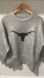 Stay warm and stylish with this gray sweater featuring a bold black longhorn design. Perfect for casual outings.
