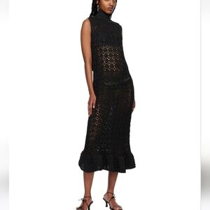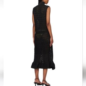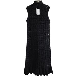 NWT Ganni Black Semi-Sheer Crocheted Midi Dress Metallic Threading Small
