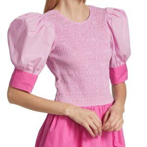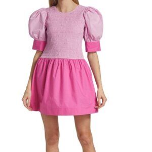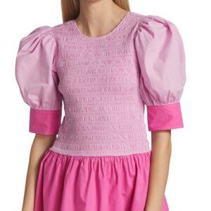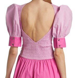 NWT Ganni Colorblock Poplin Cotton Mini Dress in Pink L DK40 $255