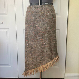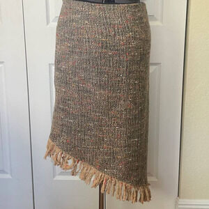 NWT Ganni Donegal Tan Asymmetrical Wool Blend Fringe Tweed Skirt • Size 44 🗣