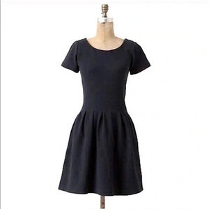 This is a gorgeous short sleeve knit dress with embossed basket weave texture throughout and a hidden back zipper. The heavy weight stretch cotton holds its shape nicely and makes for an easy backdrop for a variety of accessories. This brand is typically sold at Anthropologie and Shopbop.