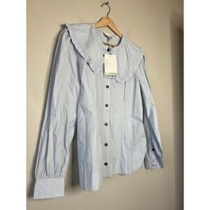 Ganni Poplin Shirt Cotton Oversized Collar Puffed Sleeve Top Heather. New with tag!